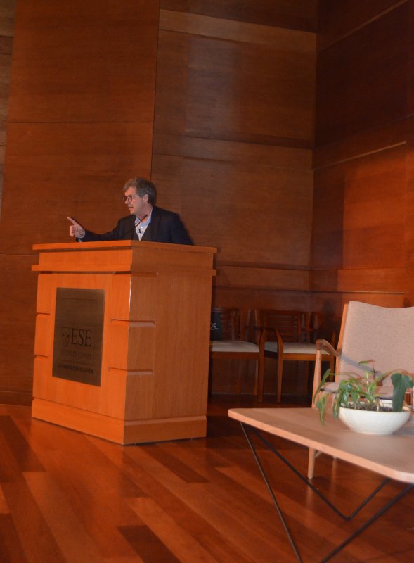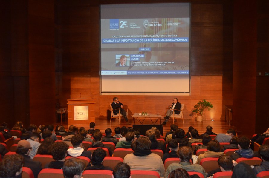 La primera charla, llamada "La importancia de la política macroeconómica", contó con la exposición de Sebastián Claro, académico e investigador de la Facultad de Ciencias Económicas y Empresariales de la Universidad de los Andes y ex presidente del Banco Central.