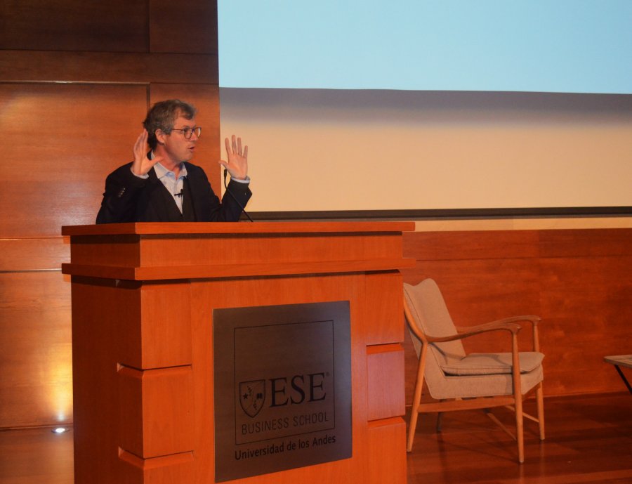 Finalmente, se dio paso a un panel de conversación moderado por Ángel Soto, profesor titular de la Facultad de Ciencias Económicas y Empresariales de la Universidad de los Andes, en el que alumnos pudieron realizar preguntas al expositor respecto a la temática de la presentación.
