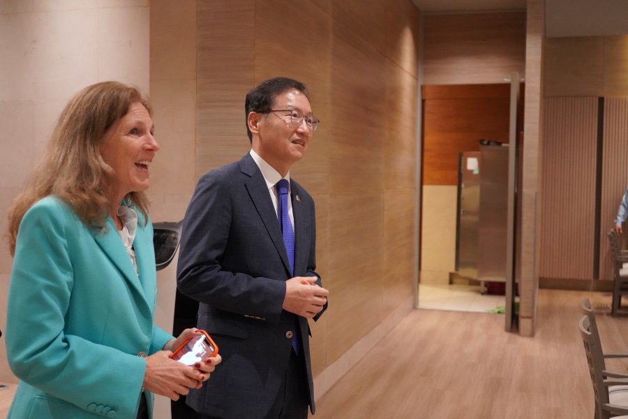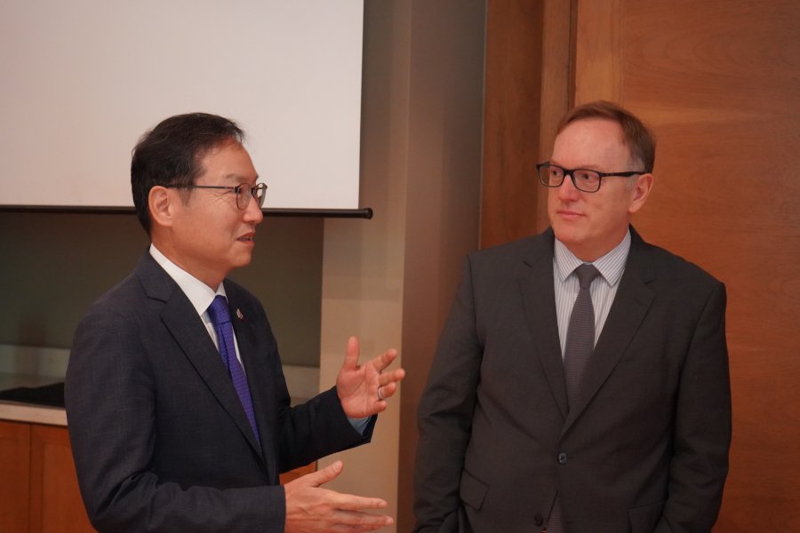 El ESE Business School recibió la visita del embajador de la República de Corea en Chile, Kim Hak-jae, junto a su equipo, en una instancia organizada en conjunto con la Dirección de Innovación, con el objetivo de explorar oportunidades de colaboración y fortalecer los vínculos entre la Escuela, empresas coreanas y, eventualmente, universidades de Corea del Sur.