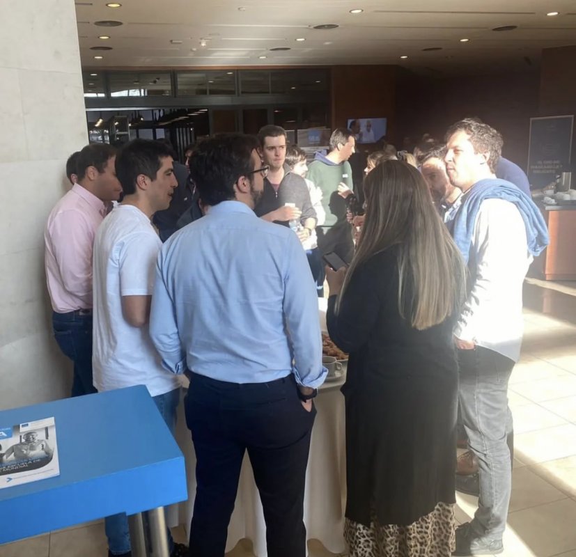 Los estudiantes, que trabajan en distintas aulas, bajan al hall del ESE a un Coffe Break común, y se juntan por equipos, mezclando las tres versiones del EMBA.