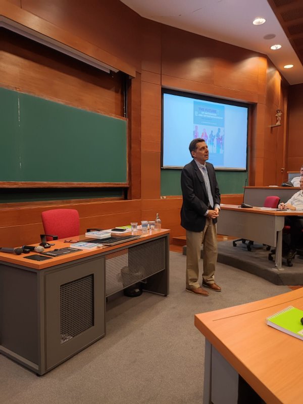 El profesor Pezoa realizó la presentación, enfatizando la necesidad de una comprensión integral de la naturaleza y alcances de la actividad empresarial, abordando conjuntamente sus dimensiones económica, social, ecológica y ética. "Este desafío, al tiempo teórico como práctico, requeriría entender a la empresa, simultáneamente, como una comunidad de personas y un cuerpo social intermedio, donde el trabajo profesional abre múltiples posibilidades de plenitud humana, excediendo en mucho el aporte exclusivamente económico".