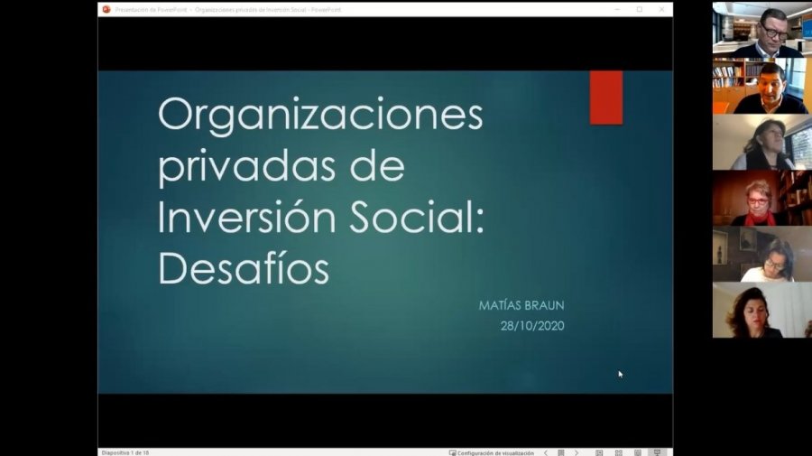 Este miércoles, 28 de octubre, se realizó una sesión extraordinaria de cierre de lo que fueron los Summits "Incentivando la inversión social en Chile". Iniciativa impulsada por el ESE a través del profesor Rafael Mies, con la colaboración del JPMorgan, cuyo objetivo es constituir un Centro en apoyo a la filantropía, las OSFL e iniciativas de inversión social.
